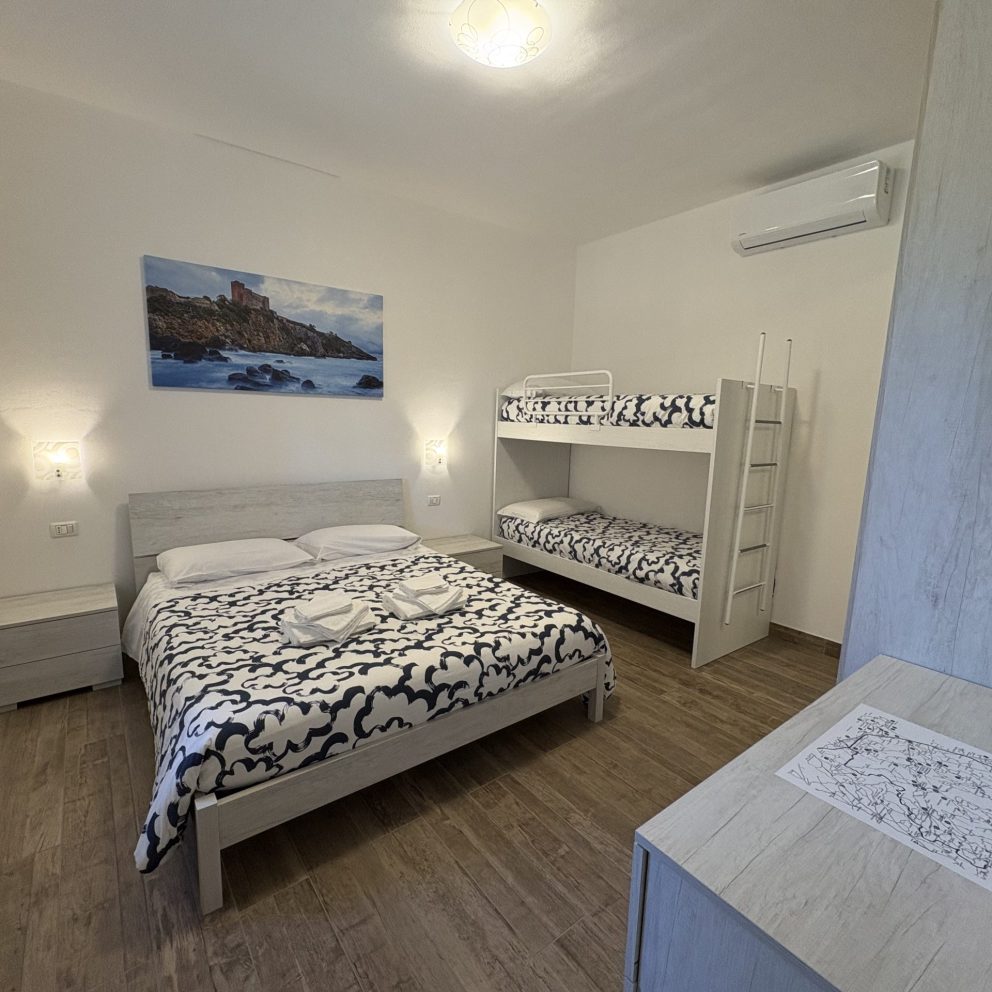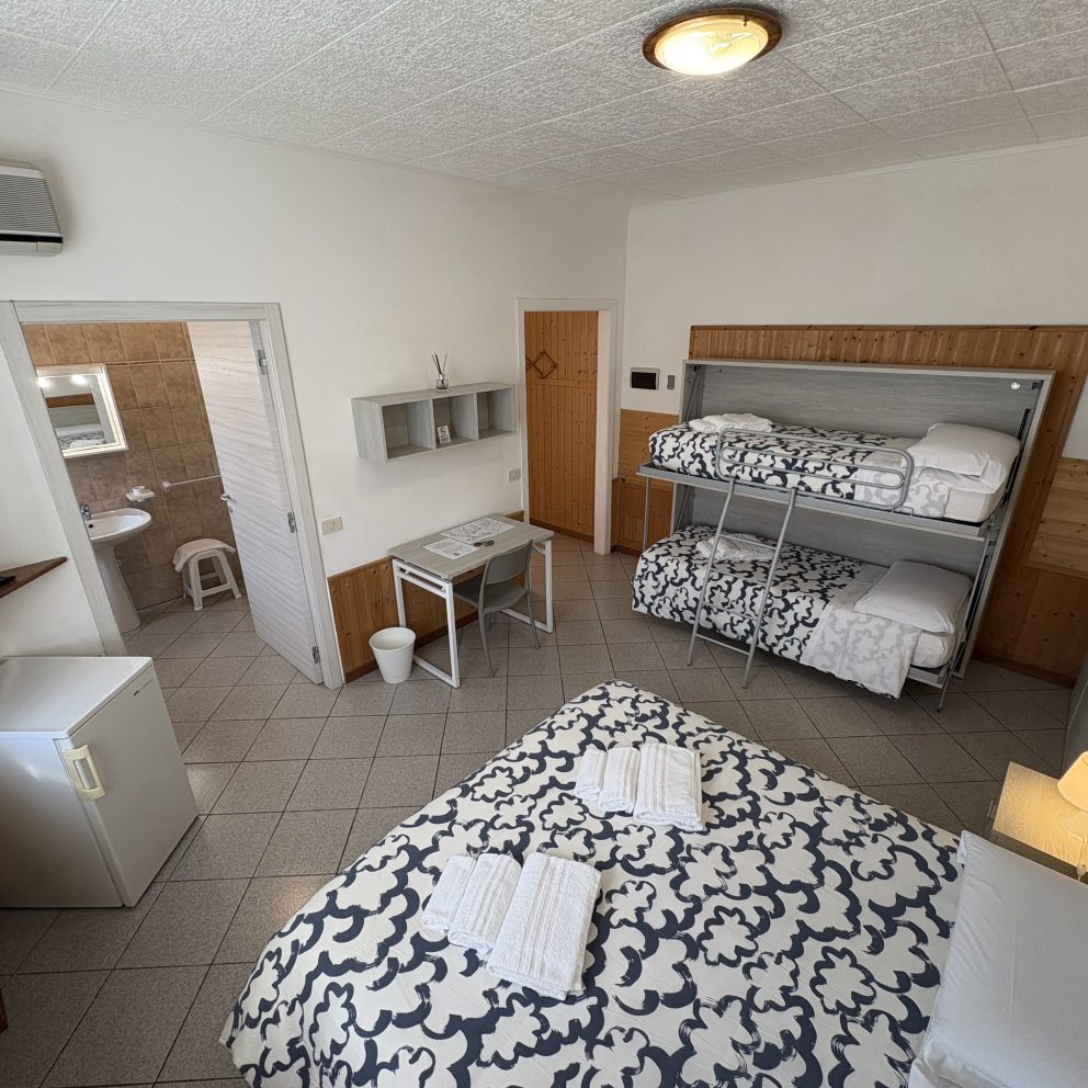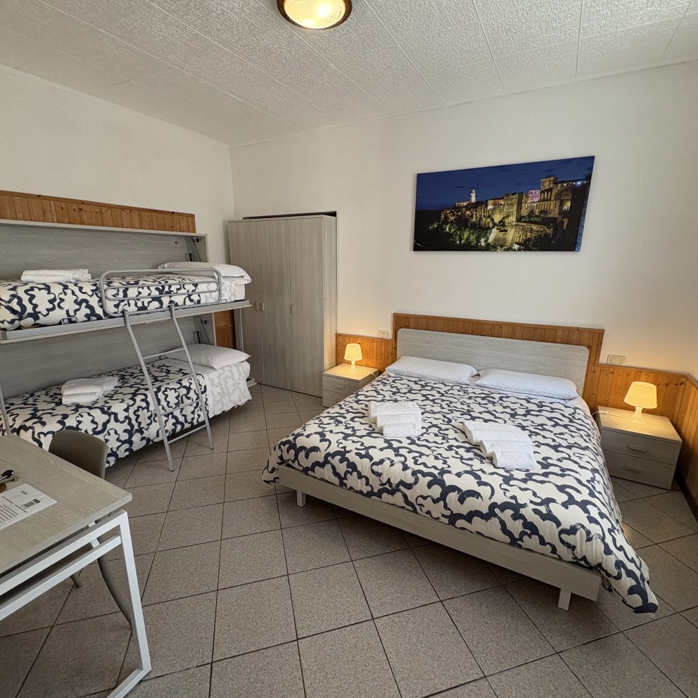 - Tipologia di letto: Matrimoniale Standard + Letto a Castello/Due Singoli